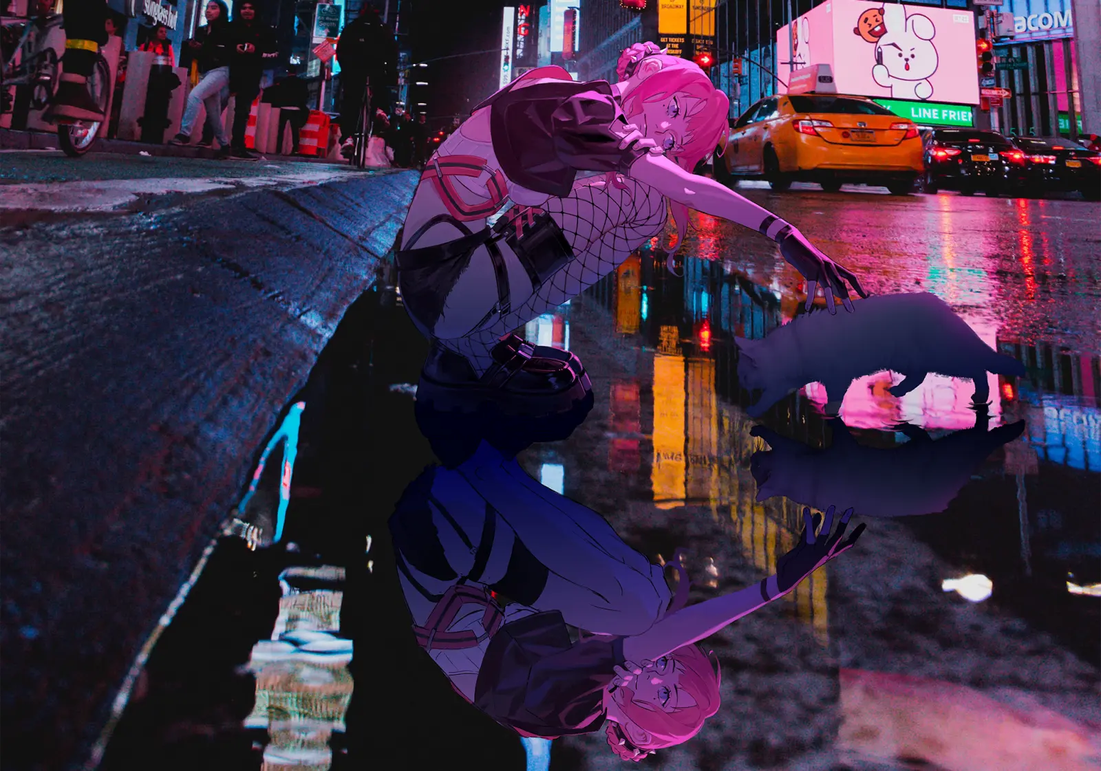 雨后街边,妙遇见了一只流浪的野猫。