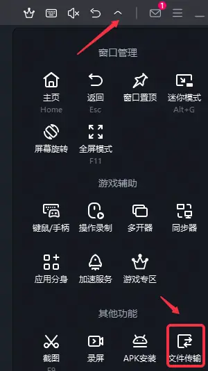点击模拟器右上角小箭头,可以打开录屏功能,或前往模拟器右上角菜单栏——设置中心——快捷键,设置录屏快捷键