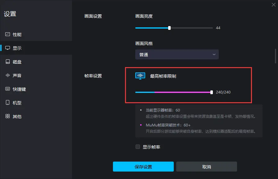 第二步,开启超高帧率模式:点击模拟器右上角菜单(三条杠)—设置中心,找到显示设置-帧率设置,将帧率调高到240帧