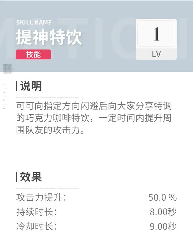 【可】被选中的理由也是因为他的技能,可以给其他队友提供攻击力加成,并且冷却时间和持续时间的间隔较短,作为增益定位的角色来说还是非常出色的。