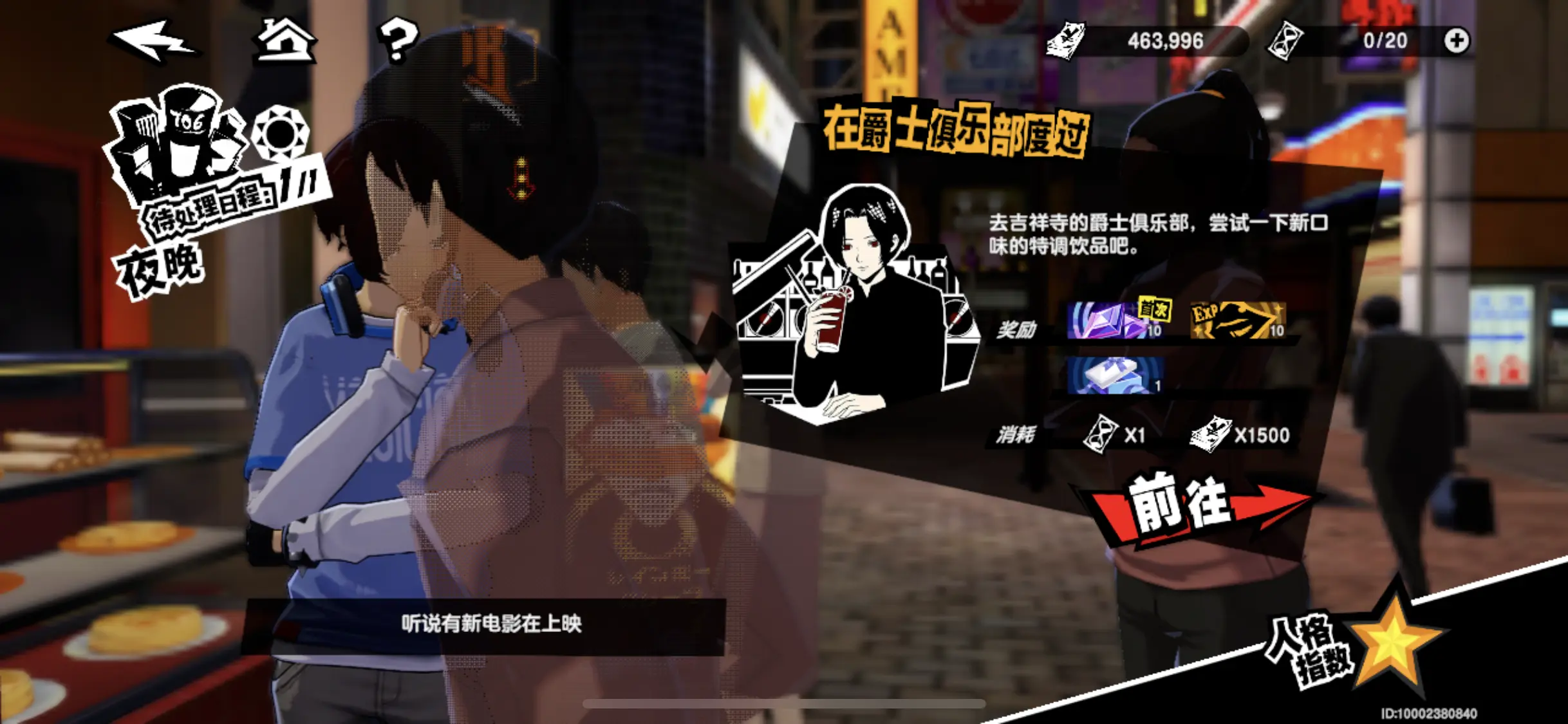 原作中的爵士俱乐部每天都会有不同的活动、特殊日子还会有Lyn现场驻场,获得的奖励也不太一样。P5X也延续了这一传统,只需要花费1500元就可以体验爵士俱乐部的多样化日常魅力,有时这里会增加“知识”、有时这里会增加“魅力”、有时这里会增加“勇气”(篇者目前刷出来这3种,但推测应该是五项数值的活动都会有,按日期随机出现),这种每天都未知的感觉何尝不是一种惊喜呢!如果五围某一项数值急需提升,不妨来这里看看,或许就有对应的属性提升。