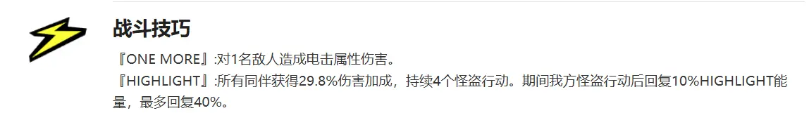 特点:坂井绫香的三技能能够直接触发一次队友的HighLight,并且自身能够增加主力怪盗的伤害加成与攻击力 |