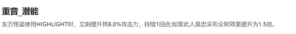性价比最高的意识,不仅仅能够少用一个回合去叠加【忠实听众】,更能够有效地提高主力怪盗的暴击率。在日常使用方面有着质的飞跃。