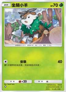 坐骑小羊 基础信息 坐骑小羊种类坐骑宝可梦宝可梦基础HP70属性撤退弱点 +20系列A绘师Naoki Saito身高0.9m体重31.0kgA1 031/226卡牌简介一直到最近为止,都还有山岳的住民乘在坐骑小羊的背上,在山路上移动。 技能 偷袭伤害:40掷1次硬币若为反面,则这个招式失败。