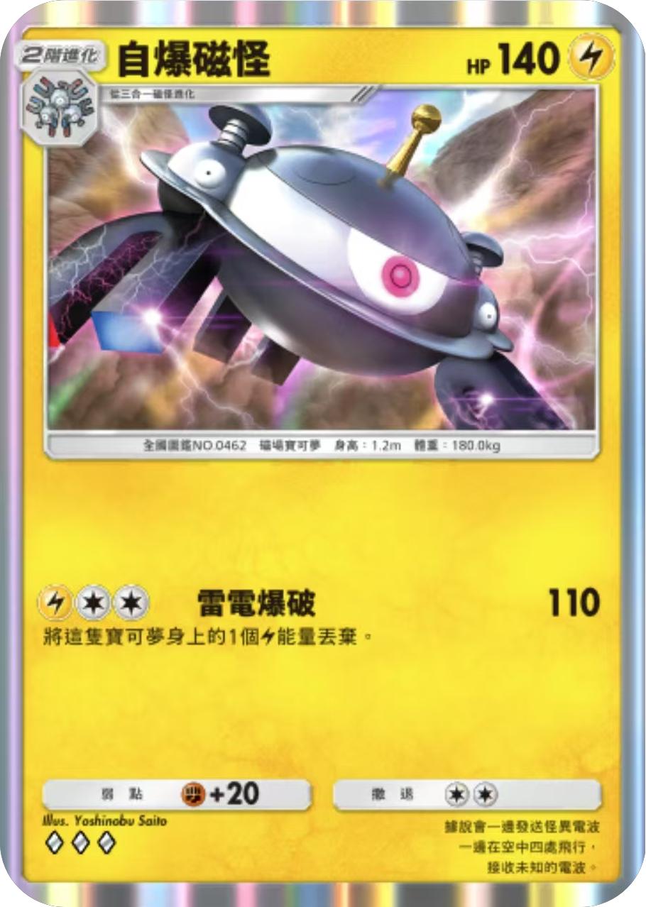 自爆磁怪是一张很有意思的牌,由于三合一磁怪可以自充雷能,而自爆磁怪用1雷+2任意色即可打出攻击,因此这实际上是一张无色牌而不是雷属性牌。因此玩家开始了围绕自爆磁怪进行混色卡组的构筑。同样组卡时记得不要携带雷能量。
