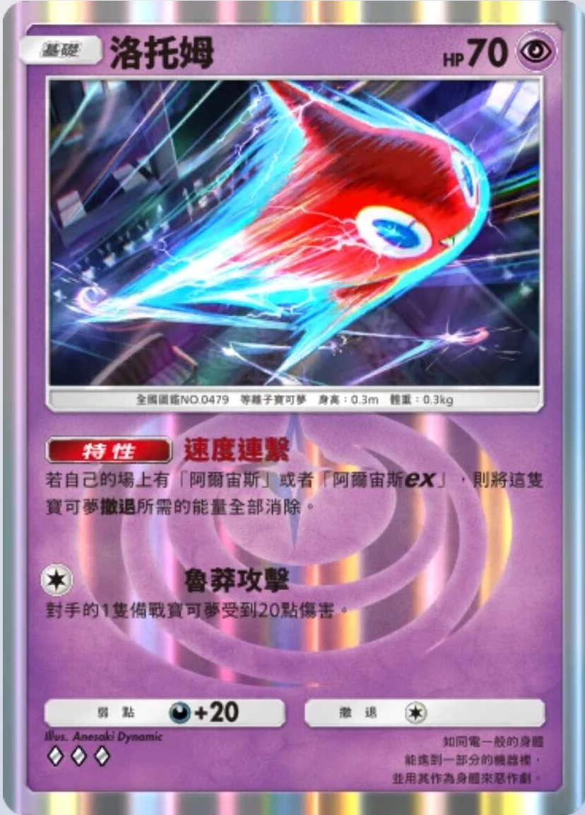 若自己的场上有「阿尔宙斯」或者「阿尔宙斯ex」,则将这只宝可梦撤退所需的能量全部消除。