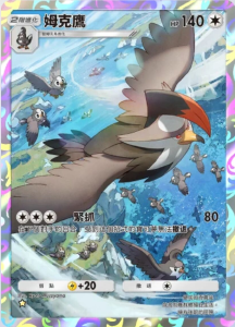 姆克鹰 基础信息 姆克鹰种类猛禽宝可梦宝可梦2阶进化HP140属性撤退弱点+20系列A绘师Ryota Murayama身高1.2m体重24.9kgA2 176/155卡牌简介变成姆克鹰后,就会脱离群体独自生活。拥有强韧的翅膀。 技能 紧抓伤害:80在下个对手的回合,受到这个招式的宝可梦无法撤退。