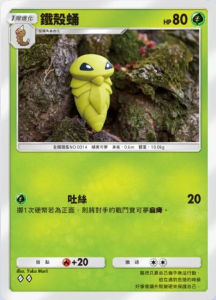 铁壳蛹 基础信息 铁壳蛹种类蛹宝可梦宝可梦1阶进化HP80属性撤退弱点 +20系列A绘师Yuka Morii身高0.6m体重10.0kgA2b 02/72卡牌简介虽然只靠自己几乎无法行动,但在遇到危险的时候,好像会让外壳变硬来保护自己。 技能 吐丝伤害:20掷1次硬币若为正面,则将对手的战斗宝可梦麻痹。