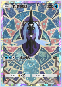 卡璞·鳍鳍 基础信息 卡璞·鳍鳍种类土地神宝可梦宝可梦基础HP100属性撤退弱点 +20系列A绘师OKACHEKE身高1.3m体重21.2kgA3 164/155卡牌简介栖息在浓雾的深处,受到了人们的敬畏。能够操纵水,是波尼的守护神。 技能 螺旋吸收伤害:60将这只宝可梦恢复20HP。