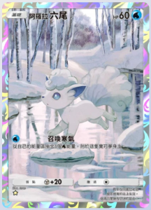 阿罗拉六尾 基础信息 阿罗拉六尾种类狐狸宝可梦宝可梦基础HP60属性撤退弱点 +20系列A绘师tono身高0.6m体重9.9kgA3 162/155卡牌简介长年在阿罗拉地区万年积雪的山上生活,使得六尾拥有了冰的能力。 技能 召唤寒气从自己的能量区抽出1个能量,附于这只宝可梦身上。
