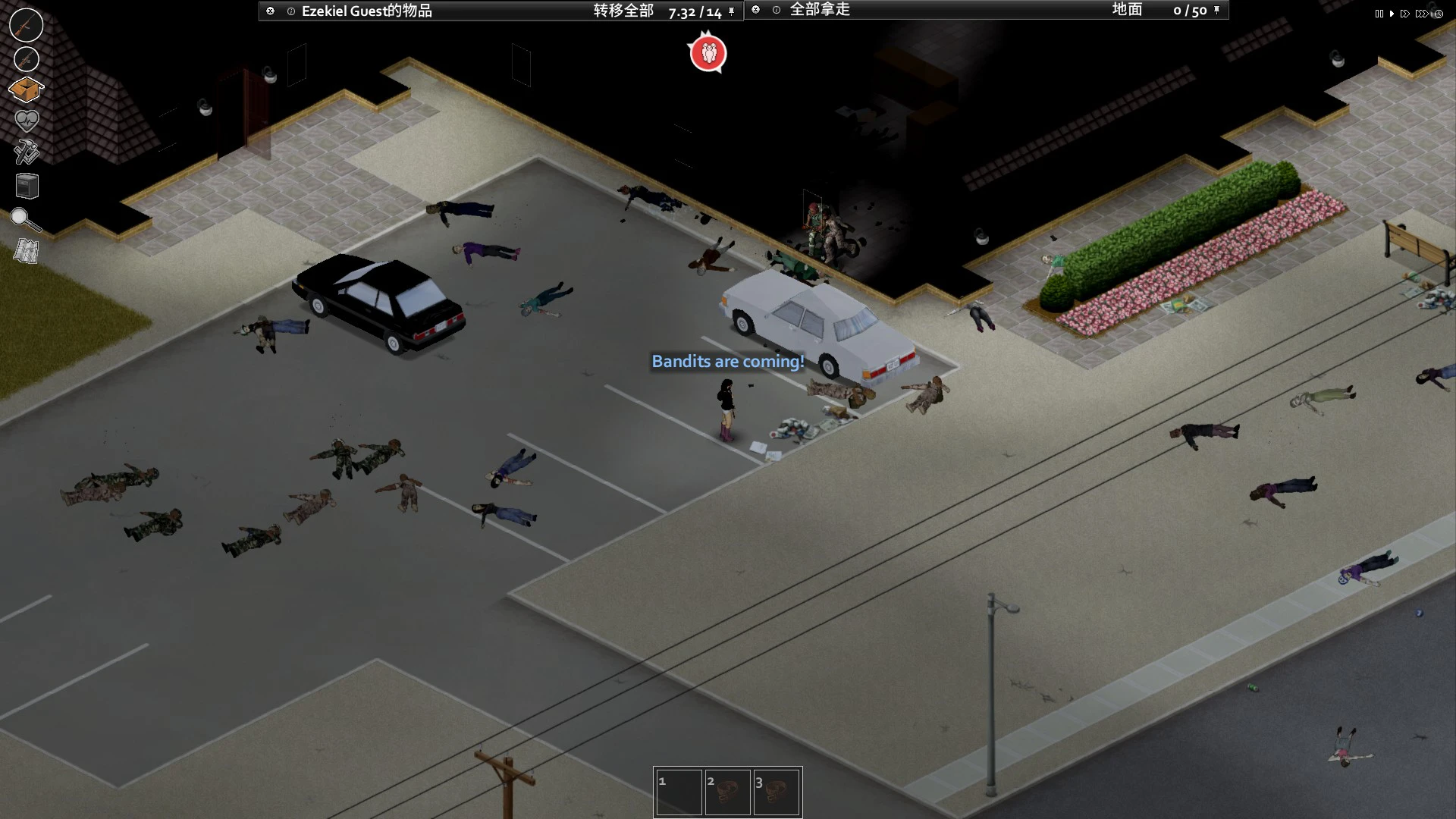 在遭遇到土匪时,小人会说话,并且小地图上会有标识,他们如果有远程武器,会优先对你开枪,如果你凑的足够近,他们会切成近战武器攻击你,离远以后又会切回枪械。可以说,土匪的枪械对你的危险远大于僵尸。