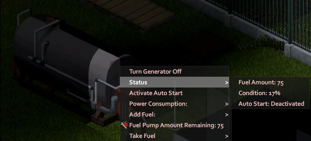 它的燃料消耗与标准发电机相同,功率半径也相同。它可以手动开启/关闭,并具有自动启动功能。它可以作为其他发电机的备用,并能感知何时启动。它可以用电子废料或废金属修复,但需要发电机技能、电气 4 级或机械 4 级。它有 500 个燃料单位的容量,可以在运行时填充或清空。无需连接这些设备,因为它们是固定的,而且已经连接好了。如果是在室内,它们也会通风,以防止毒素进入。如果燃料耗尽,它们就会关闭,如果耗尽,它们就会发出巨大的 “嘭嘭 ”声,吸引周围的僵尸。现在在 2.0 中可以移动,这要归功于绿色烤箱公司!“电力不足时,请购买绿色能源!”
