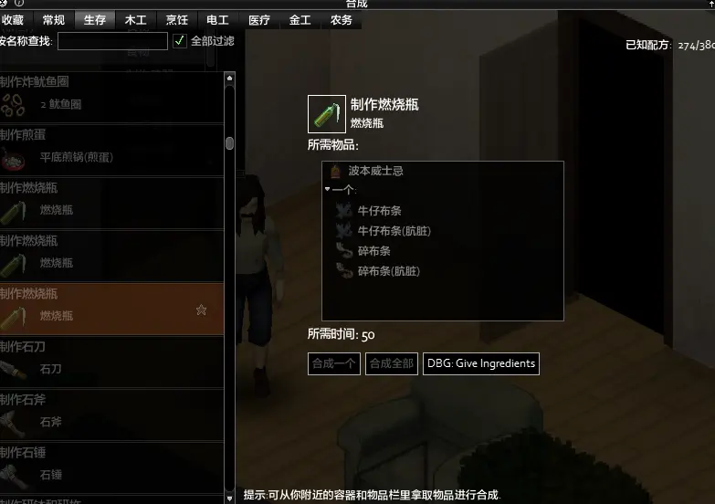 - 修复了“重新填充打火机”配方的问题,现在不会销毁打火机,接受任何带有`RefillableLighter`标签的物品,并且只使用一次打火机油,没有复杂的计算,如果打火机未满,可以再次制作该配方。