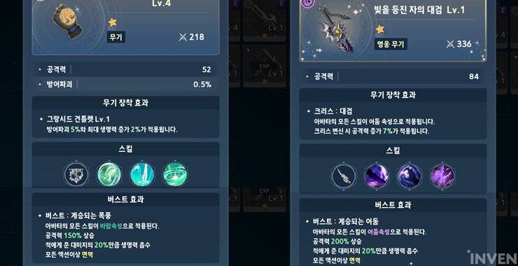 ▲ 普通武器(左)和英雄武器(右)都可以使用属性。