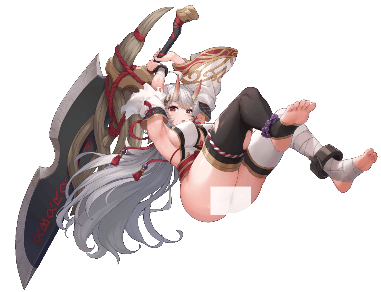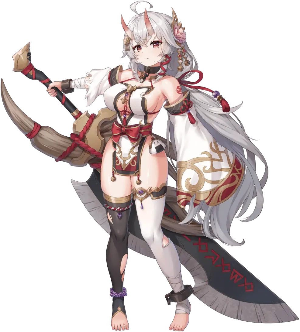 寡言冷淡的鬼人族少女,使用与身材明显不符合的,铁块般的双手巨剑。