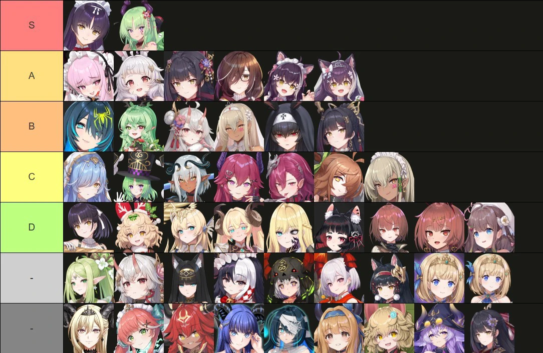 - 新春九连这种提供一回合强力辅助的角色如果站位在最后,那么她就完全失去了辅助能力,因此可能会降到 B 级甚至以下
