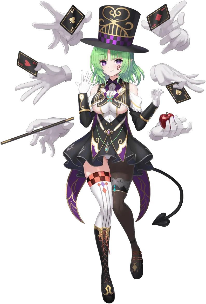 毫无恶魔的架子,热衷於表演魔术。热心帮助任何人,不过由於恶魔的价值观与常人不同,时常帮倒忙。
