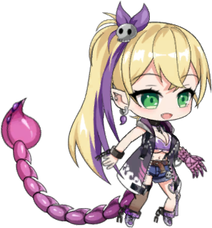 比身高还长的蠍尾生长於屁股上方。跟近似成人的外表相比,仅有幼儿程度的智能。