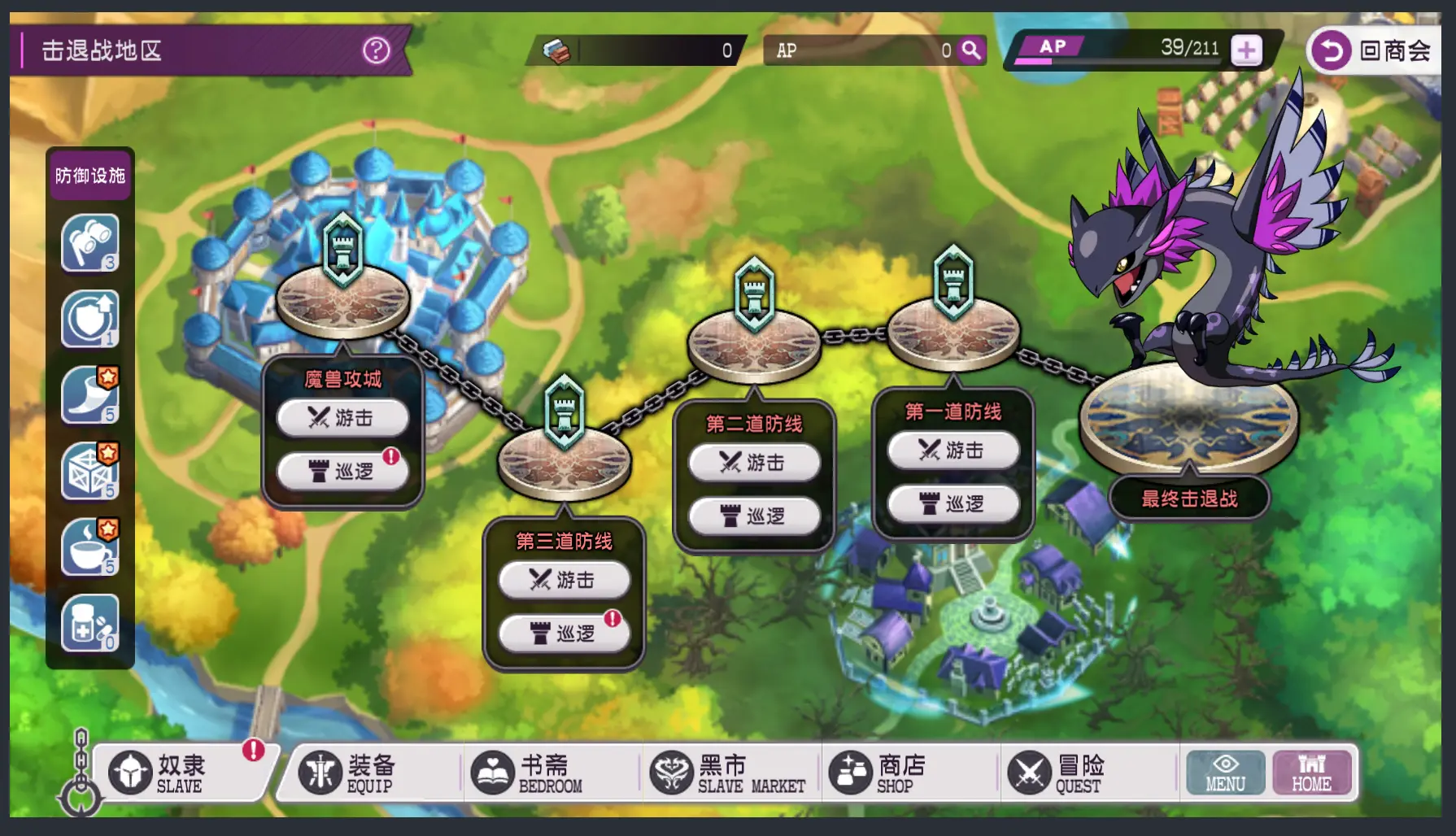 成功击退BOSS后,该地区会解锁 "游击"与"巡逻" 玩法,可获取战场物资用于强化设施