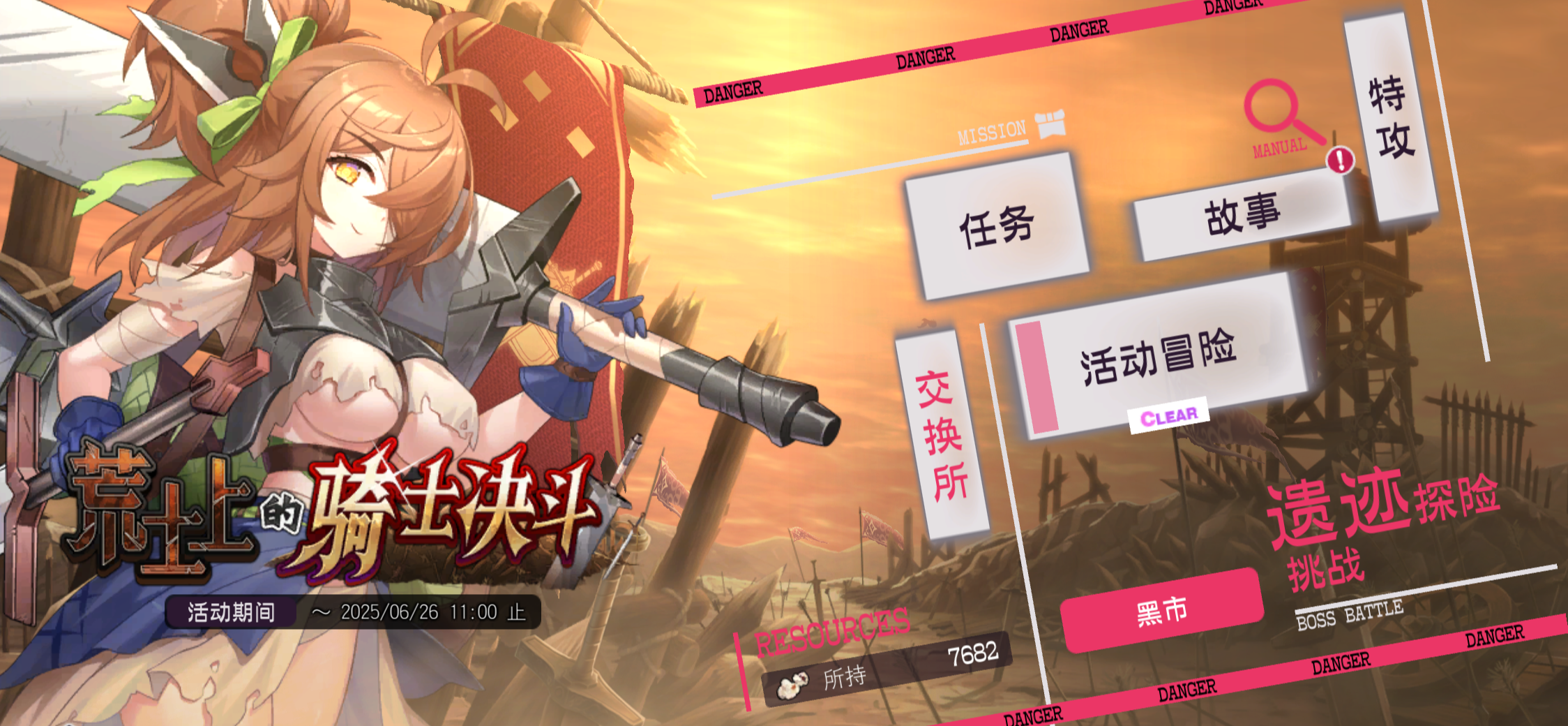 荒土上的骑士决斗 活动图片 活动信息 荒土上的骑士决斗活动时间(首发)2025.6.19~2025.6.26活动类型角色首发活动(单周)活动内容魔渊活动物品爆米花、神秘纸片活动卡池蜜儿・唐吉诃德、安限定池
