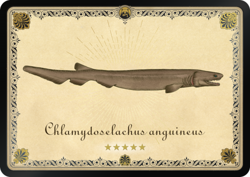皱鳃鲨栖息在太平洋和大西洋周围的水域。它被誉为海底世界的国王,生活在深达1000米的海底。这是最独特的鱼类之一,这种水下掠食者自白垩纪以来几乎没有进化过。它有一个又大又宽又平的头,眼睛是绿色的,身体则是黑棕色的。皱鳃鲨的长度可达到2米,体重100公斤。它是每个垂钓者都梦寐以求的稀有鱼。
