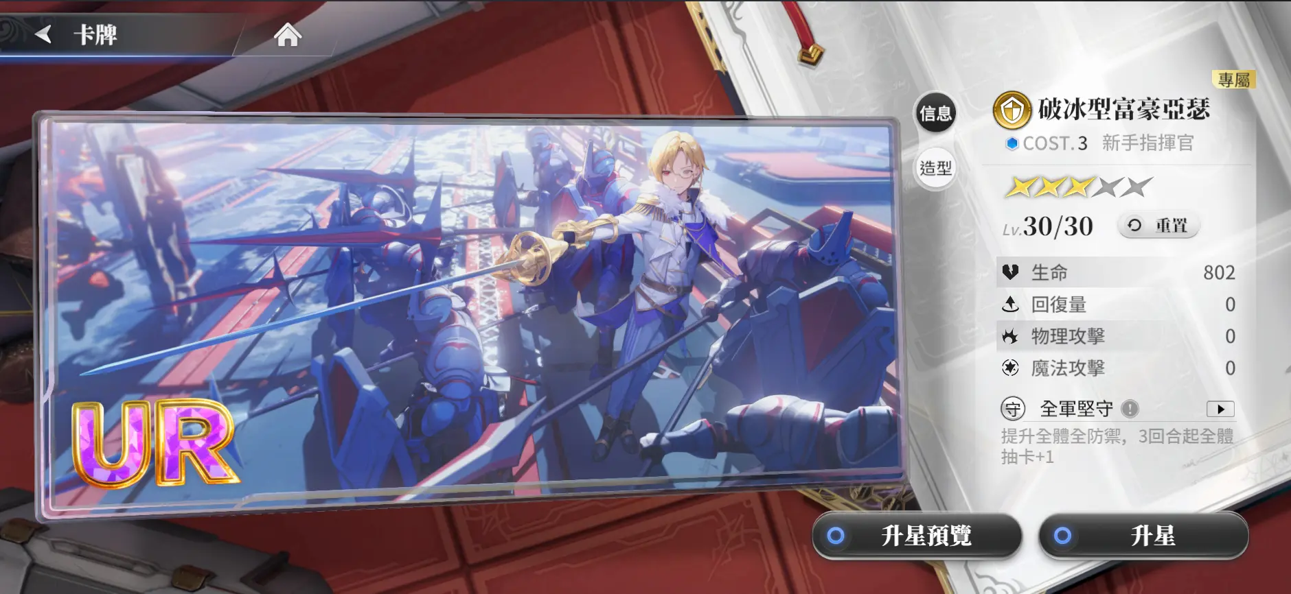 守护:坦克位,主要作用是提升队友抽卡数和生存。只有豪能提升全队的抽卡能力,因此增加抽卡数的卡牌是最优先的