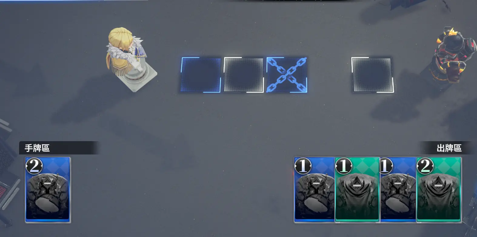 所有关卡的通关条件一致,都是行动结束时落在最右侧的格子上。