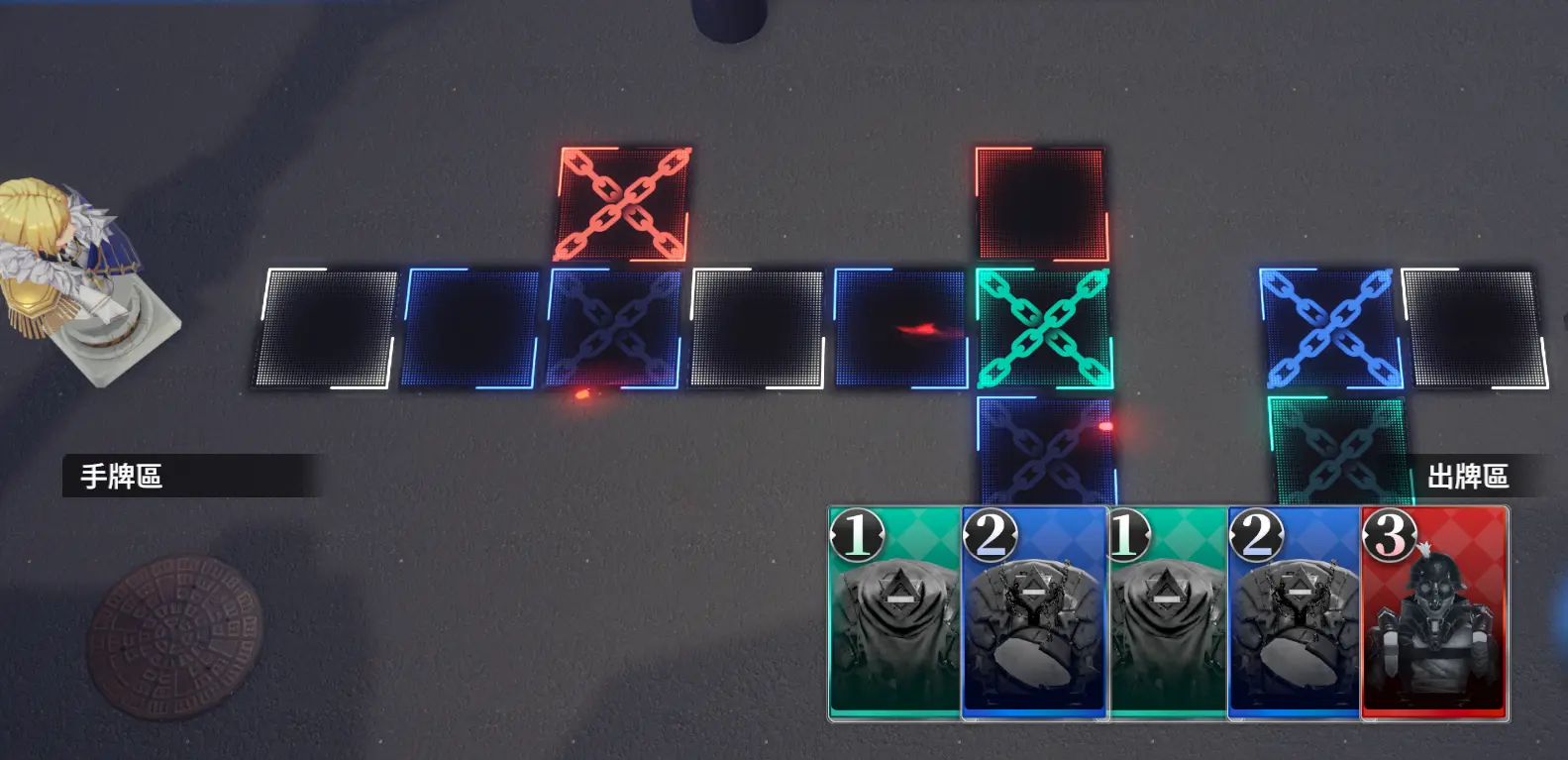 连结格关卡,连起来的格子合并视为同1格。多色的连结格允许包含的任意颜色卡进入。
