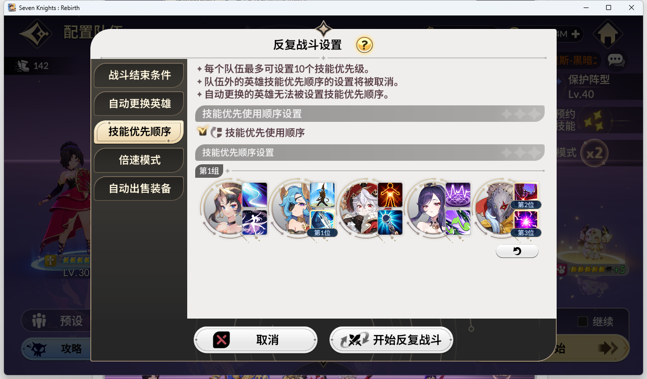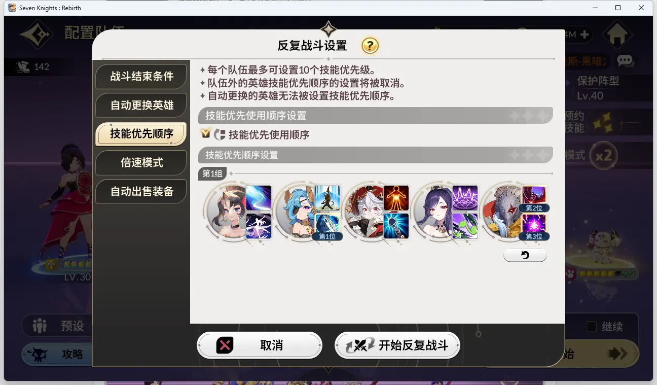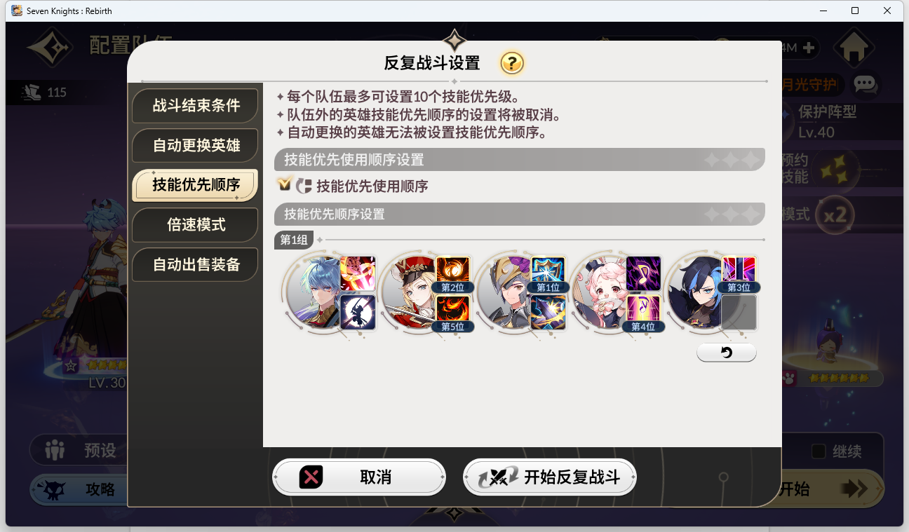 以下是反复战斗的技能优先级: