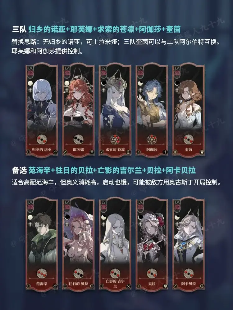 死斗赛三局两胜制,特点是易攻难守,一队打对面二队,二队打对面三队,很容易获胜。 3v3有较强不确定性,奥义顺序是系统随机的,我给出了一些不建议在3v3上场的角色,比如莱夏、归乡的哈缇及dot、SR小克莱夫。 也请大家根据自身情况调整阵容。