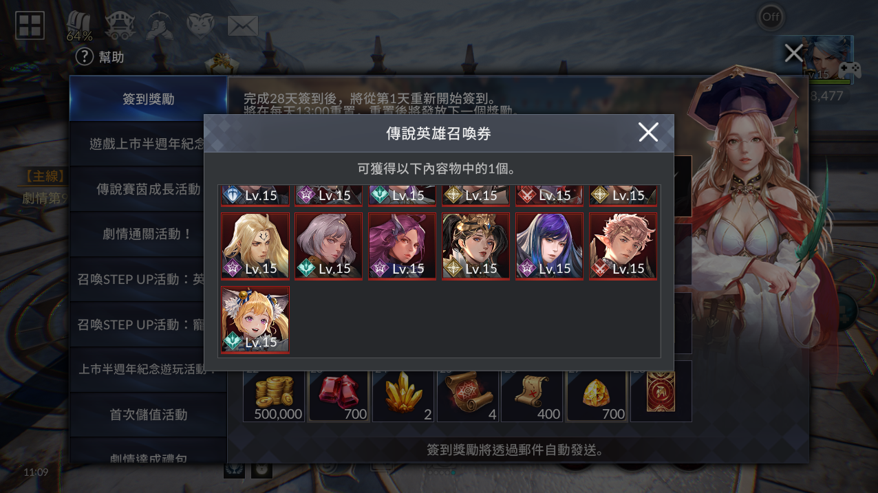 - 于原先28天签到奖励中的“第28天”奖励,传说英雄召唤券等活动专属传说英雄召唤券/选择券中,