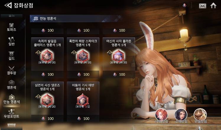 于爱莉丝的杂货商店新增“万能碎片”选项商店,与此同时新增全新素材“万能灵魂碎片”,使用“万能灵魂碎片”可每日无限制的购买(传说+)阶级的英雄灵魂碎片。