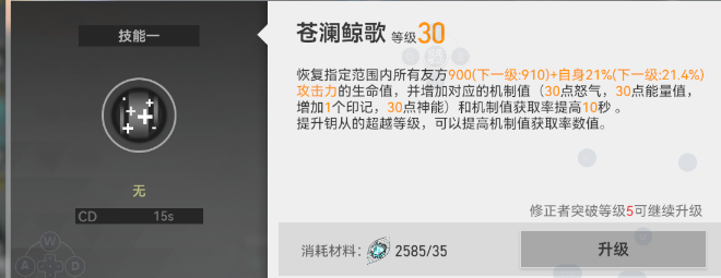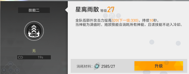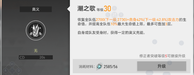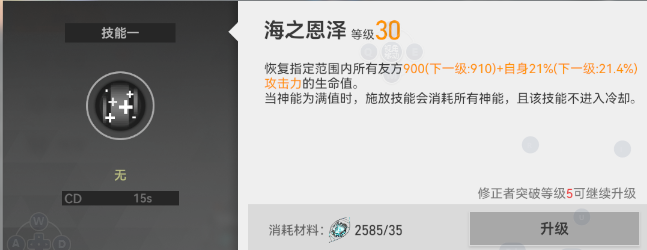 唯一一个输出技能,可以用来补伤和关卡清屏(伤害足够情况下)