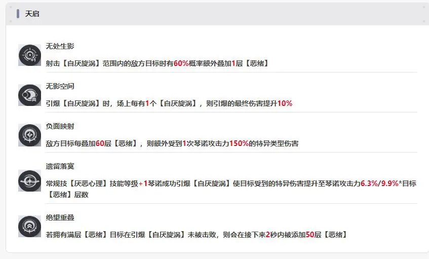 天启提升为纯粹的数值,由于定位是主C,最好是能开到2天启提升伤害。
