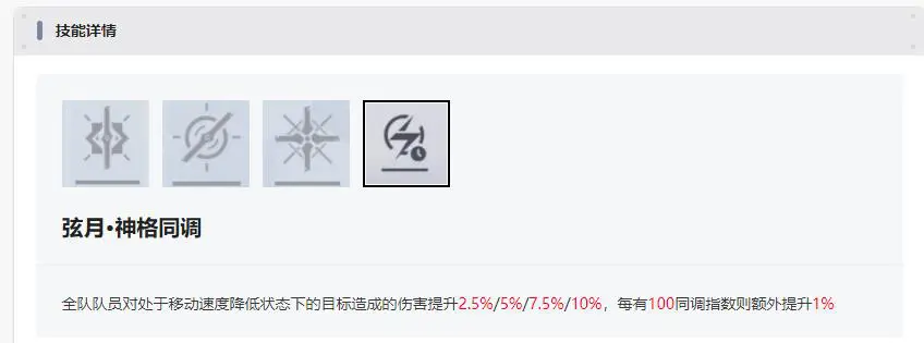 辉夜的神格是增加对减速下敌人的伤害,由于支援技不能提供减速效果所以对于后台辅助用法的辉夜来说没什么作用,也就没有特别的堆同调的需求。