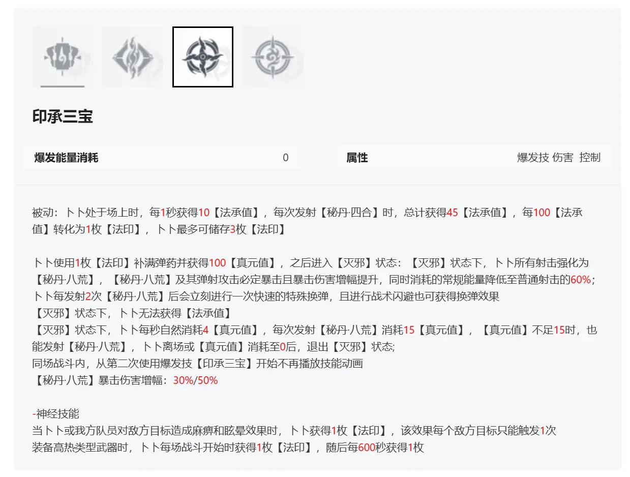 神经技能里,右边的战斗开始获得1枚法印的效果比较关键,这样开局就有1个大招充能。不过鉴于大招的【灭邪】状态下无法获得法印,看情况也可以攒一下第二枚。