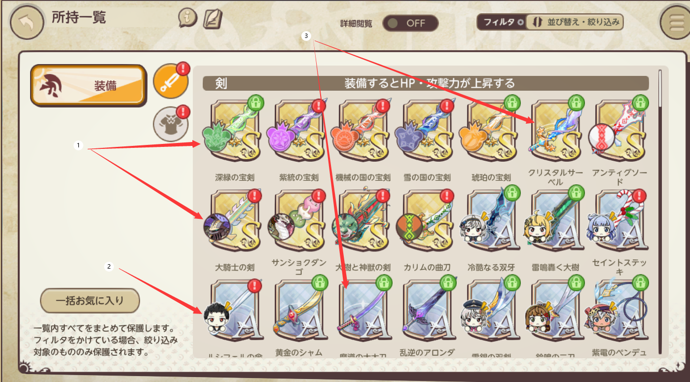 以剑为例子,序号1所指的带某种宠物头像或者奇怪头像的S装备为套装