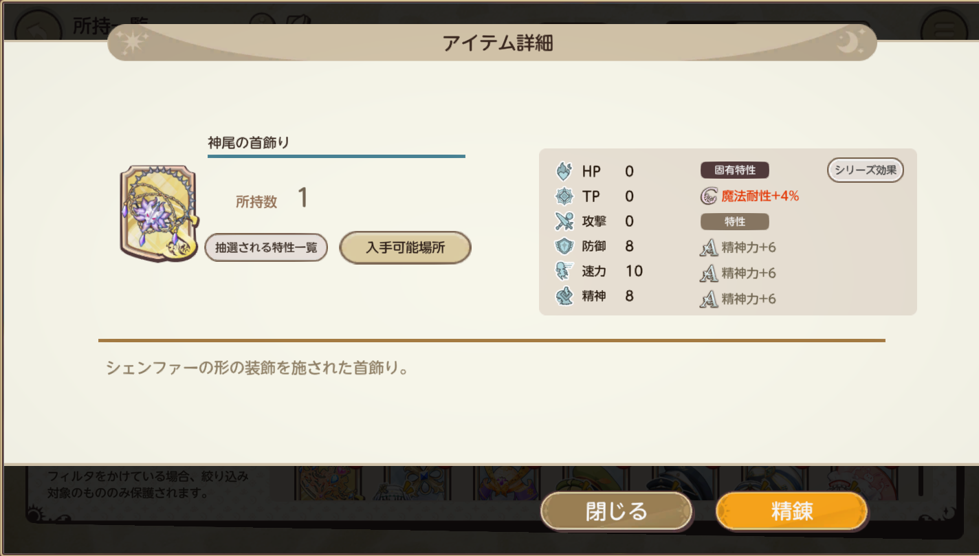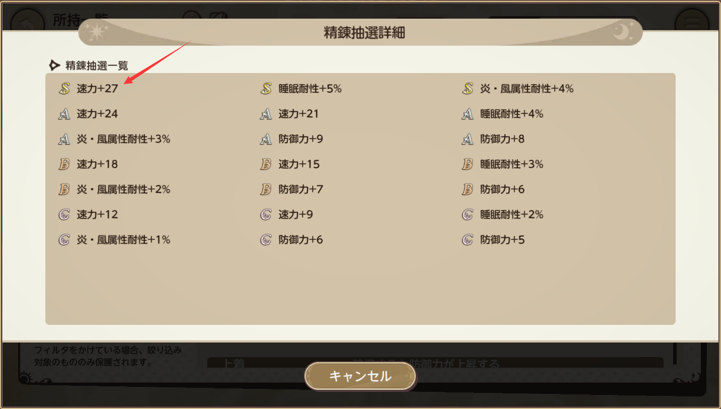 这个是狐狸首饰的词条,一眼望去就两个要的,速度+27和精神+6