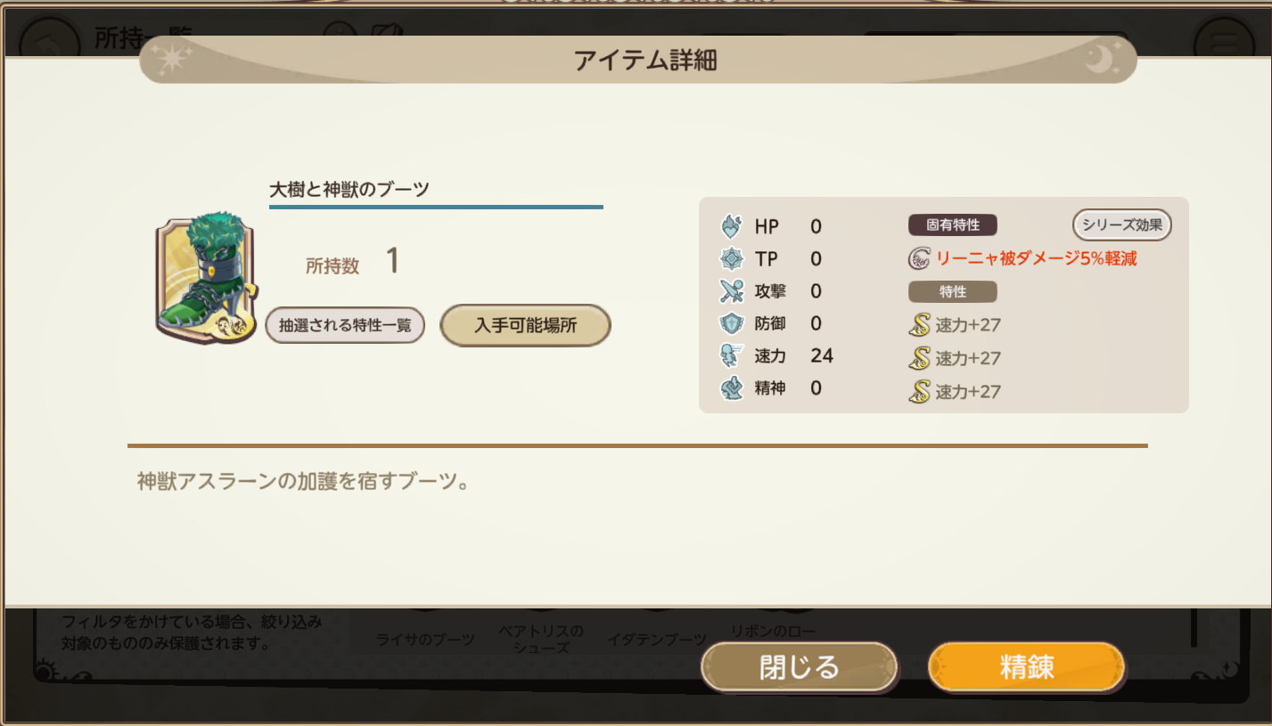 这是狮子鞋的洗练属性,一眼望去,除了速度,其他全是废物,不用想直接洗速度