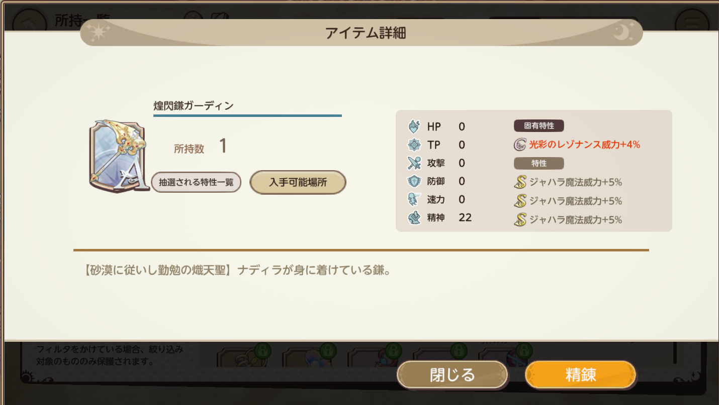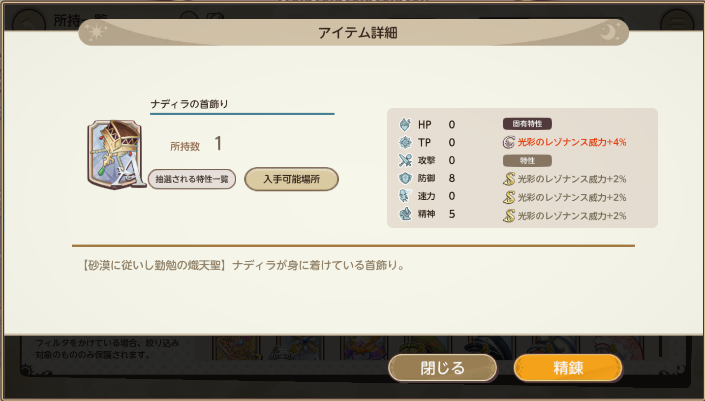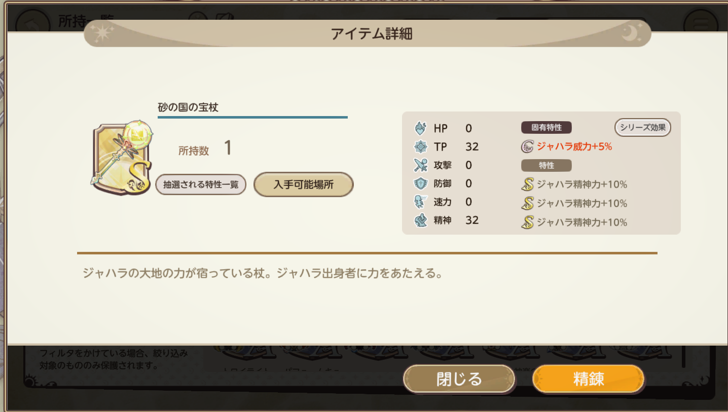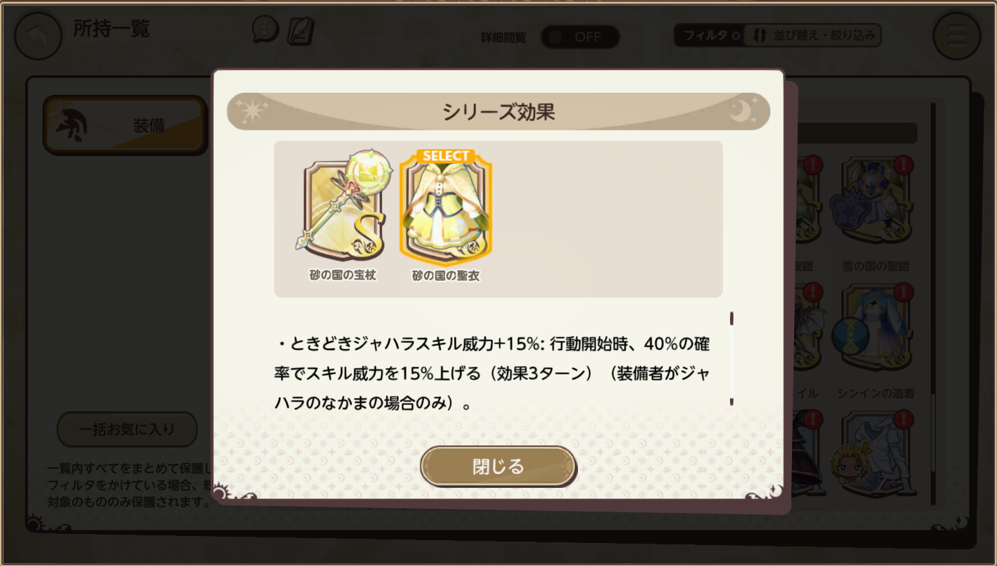可以看到这套提供沙漠国5%威力和45%精神提升,以及行动开始时概率提升15%技能伤害,我们上面说过的一周黑皮刚好也是沙漠国,这套装备的加成完爆狐狸套。