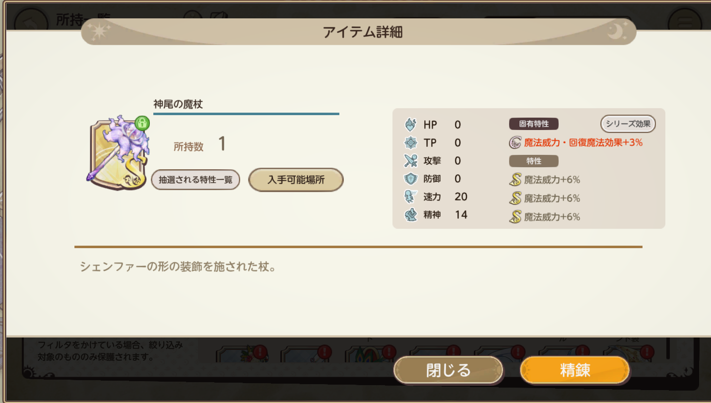 这是狐狸杖的洗练词条,一眼望去,6%魔法威力,其他没有用