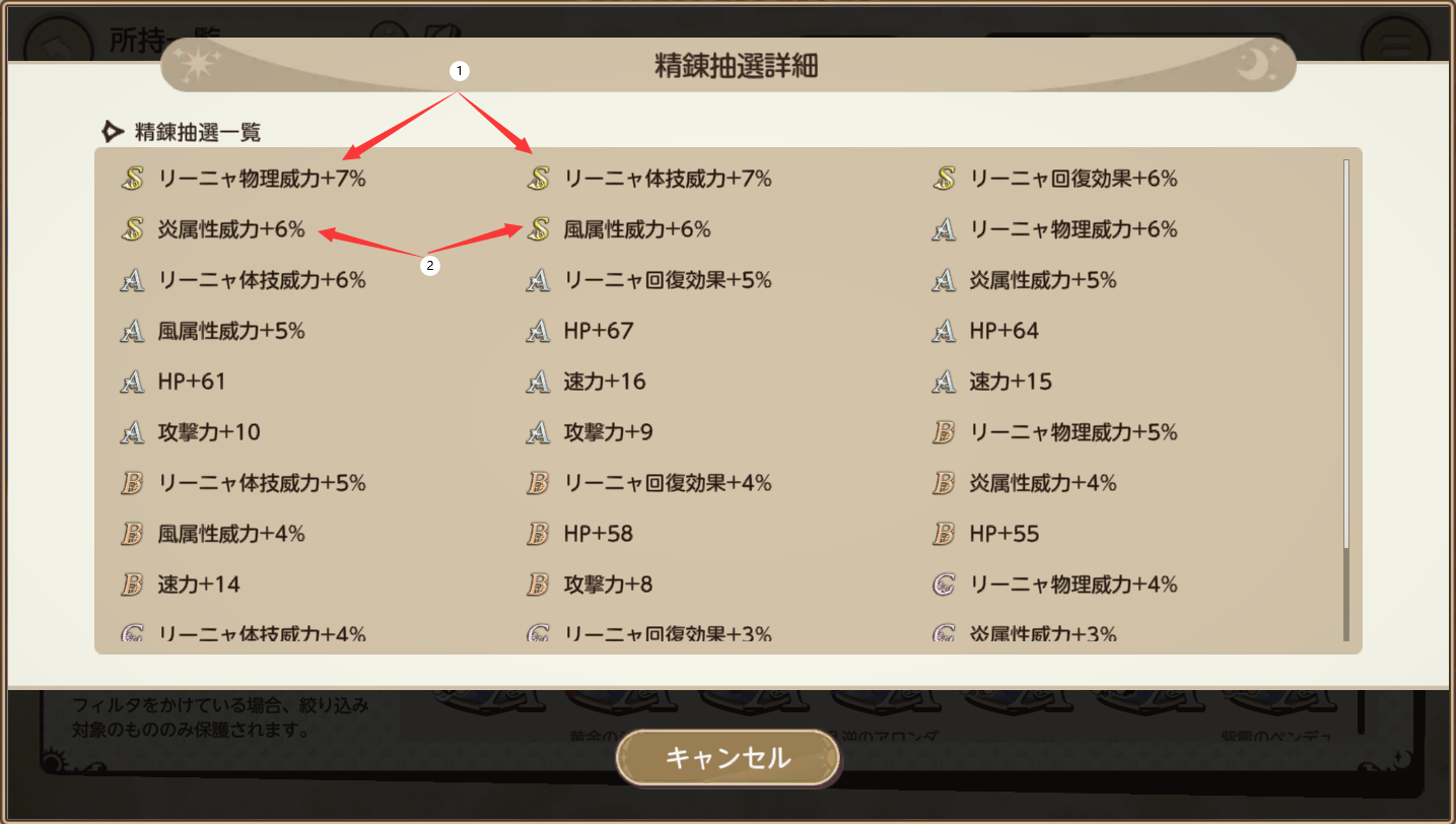 序号1所指的一看7%伤害,还是绿国的,因为这套本来就是给绿国穿的,我们就可以洗这两个,如果你没有绿国角色,你可以洗序号2所指的,会次一点伤害,而且不能凑套装,只能单独穿,因为上面说过了套装属性是给绿国加成的。至于回复什么的,洗洗睡了,你游讲究的是极致的输出,这种直接无视掉。