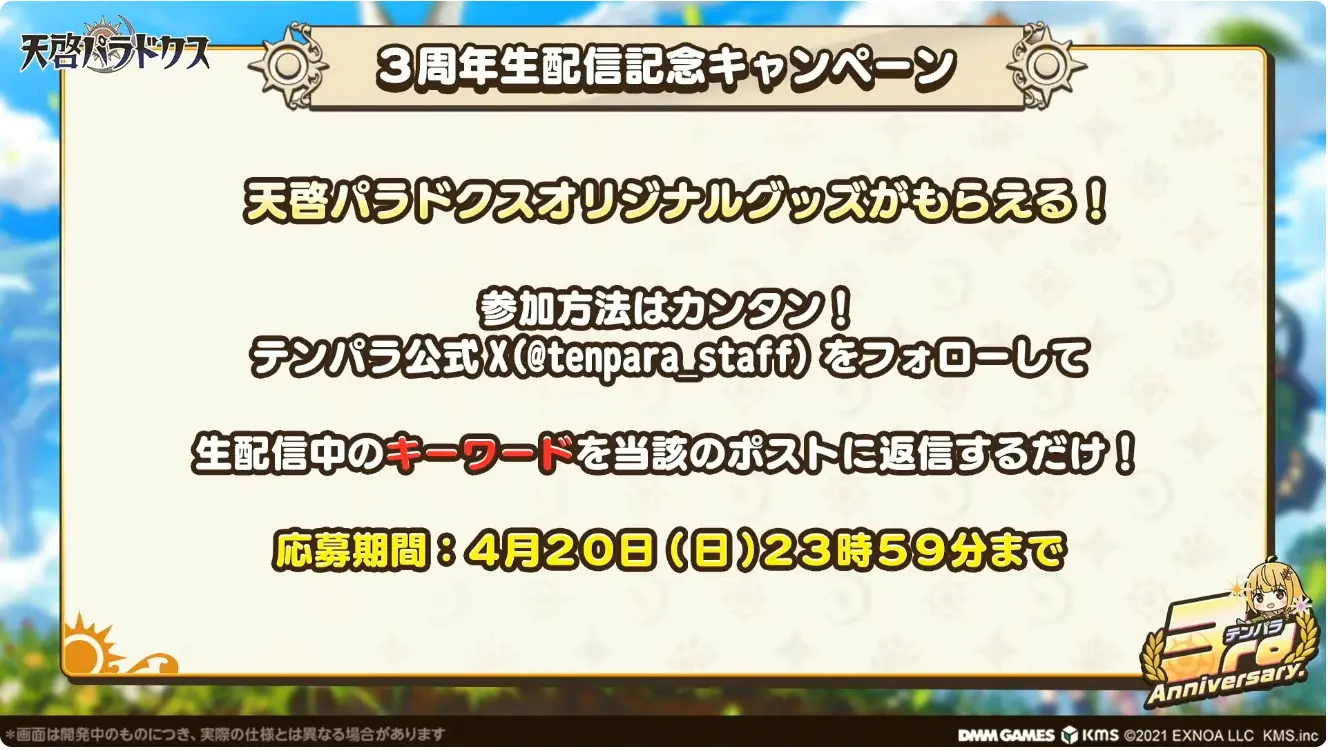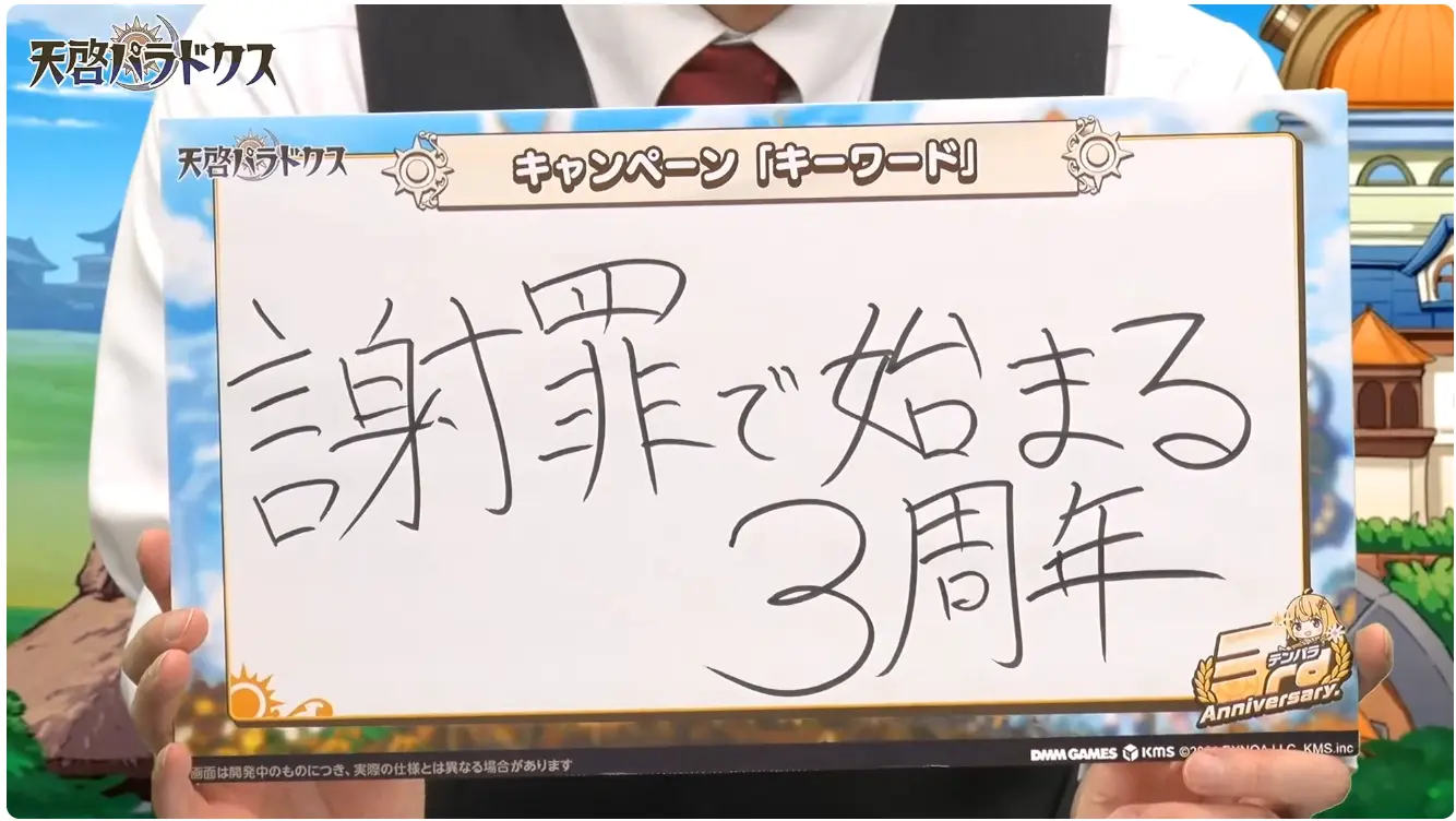 三周年及其相关活动本准备于4月13日0点(日本时间,以下同)开放,但是由于4月11日维护结束开服时程序员脑子短路把三周年相关礼包提前开放导致一部分玩家提前购买了,官方紧急维护。由于官方未预保存数据无法回档,经过商议后最终决定三周年相关活动提前一天改为4月12日0点开启,维护也一直延长至4月12日0点。因此造成了三周年活动比三周年生放送更早的情况,也就有了本次“从谢罪开始的三周年”。