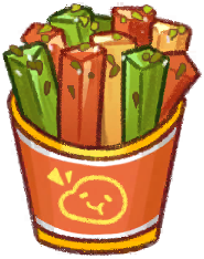 艾舒尔吃了胡萝卜炸物后,开心地说这是可以在厌倦爆米花时交替食用的菜单。