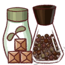 软软的木头 | 软巴巴的黏土 | 湿哒哒的纸粥 | 闪亮玻璃 | 七彩花汁 | 雕刻宝石 | 脆脆的金箔 | 嘎吱的铁粉 | 皮树叶 | 硬质的布片 |