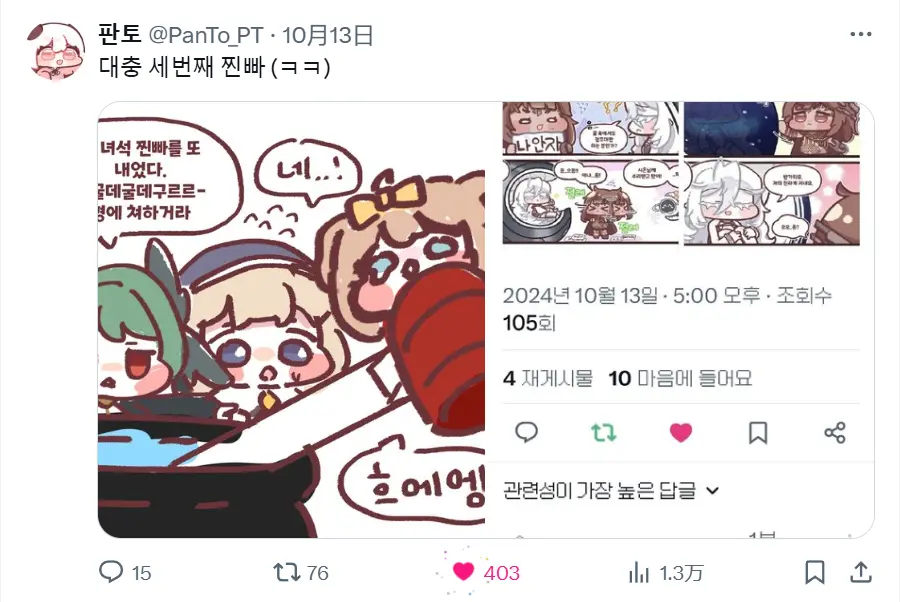第四十五话 如果伊德和加维亚只用声音交流的话我也想躺进去抱着伊德睡觉呜呜呜...作者:판토@PanTo_PT第四十六话>PS:这次是负责管理推特的黄油(常作为EPID员工的代称)把漫画顺序放反了,让PanTo老师画了一张图讨伐