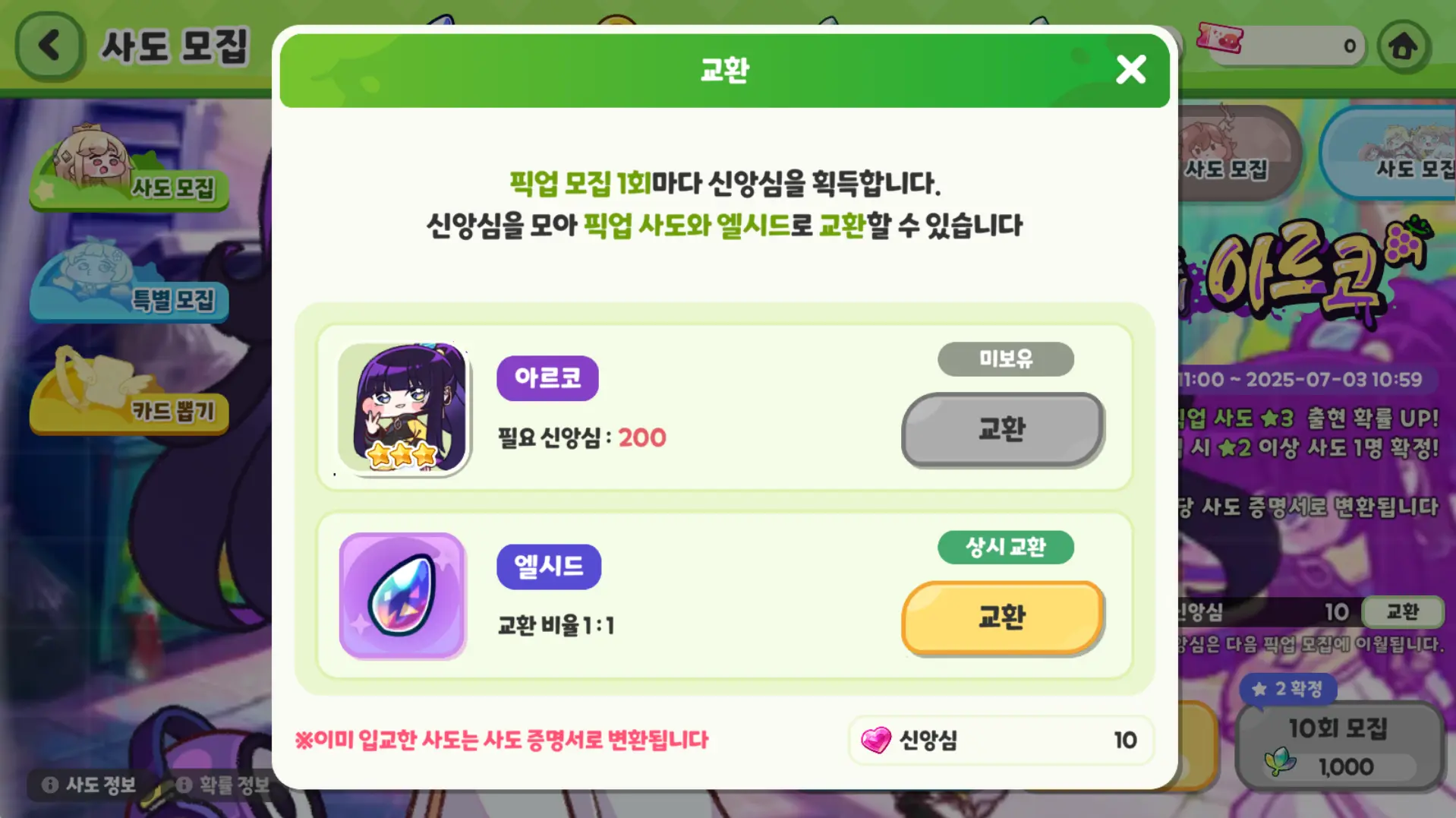 此角色需要200信仰心交换( 重复 获取/交换 会获得阿尔柯使徒证明书20 )