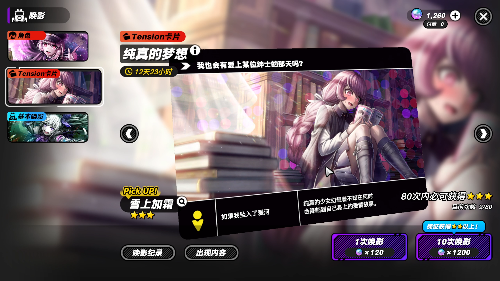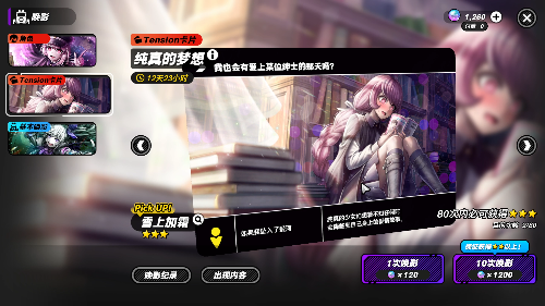 先说唤影,从上到下为角色up池,Tension卡up池,及常驻池