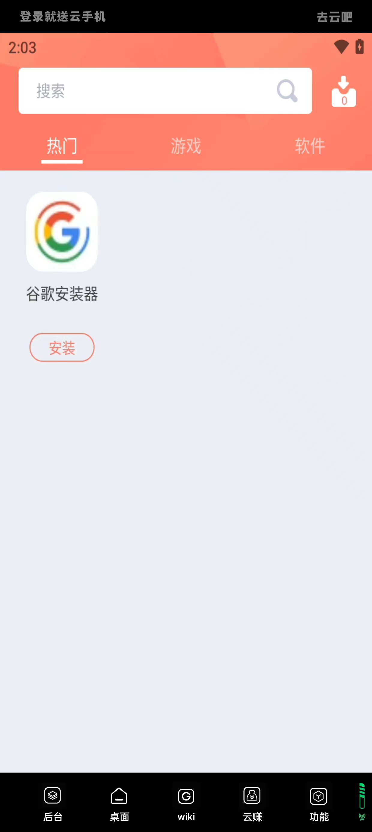 1、部分游戏需要谷歌服务框架才能启动,用户可以在云手机【应用市场】中安装谷歌安装器,通过谷歌安装器安装谷歌三件套