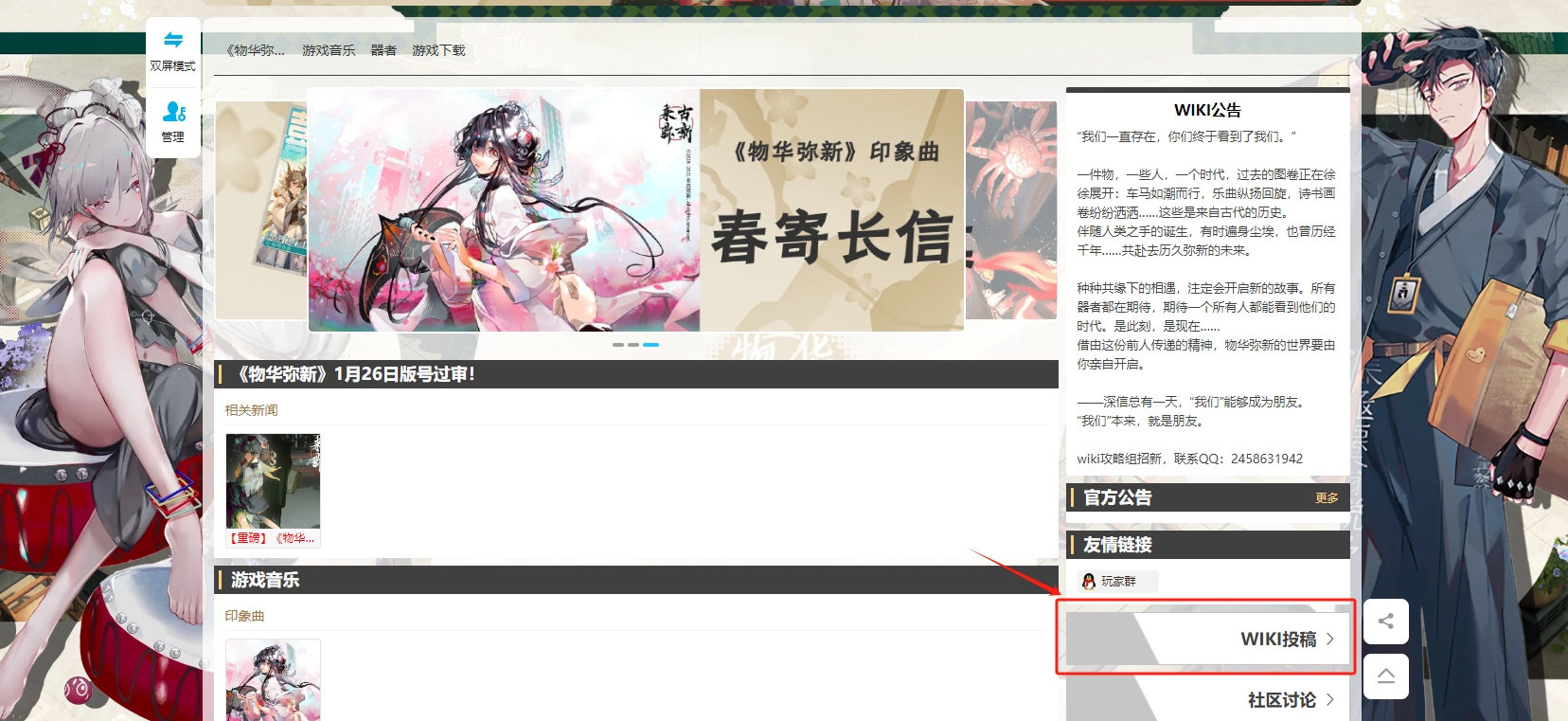 攻略投稿指南Q:我不是攻略组成员可以在wiki投稿攻略吗?A:当然可以!这里非常贴心的为野生大佬准备了投稿功能!投稿教学推荐使用PC端进入wiki,点击右侧wiki投稿进入编辑器,在这里可以尽情创作了!编写好后点击发布即可,发布的帖子会出现在社区,管理员看到后会设置成为词条在首页展示你的一篇攻略或许会帮助到很多人哦wiki管理员的联系方式如果有任何问题可以找┏ (゜ω゜)=☞阿玉(2458631942)任何编辑相关的问题也可以找我wiki不会用?阿玉来教你!